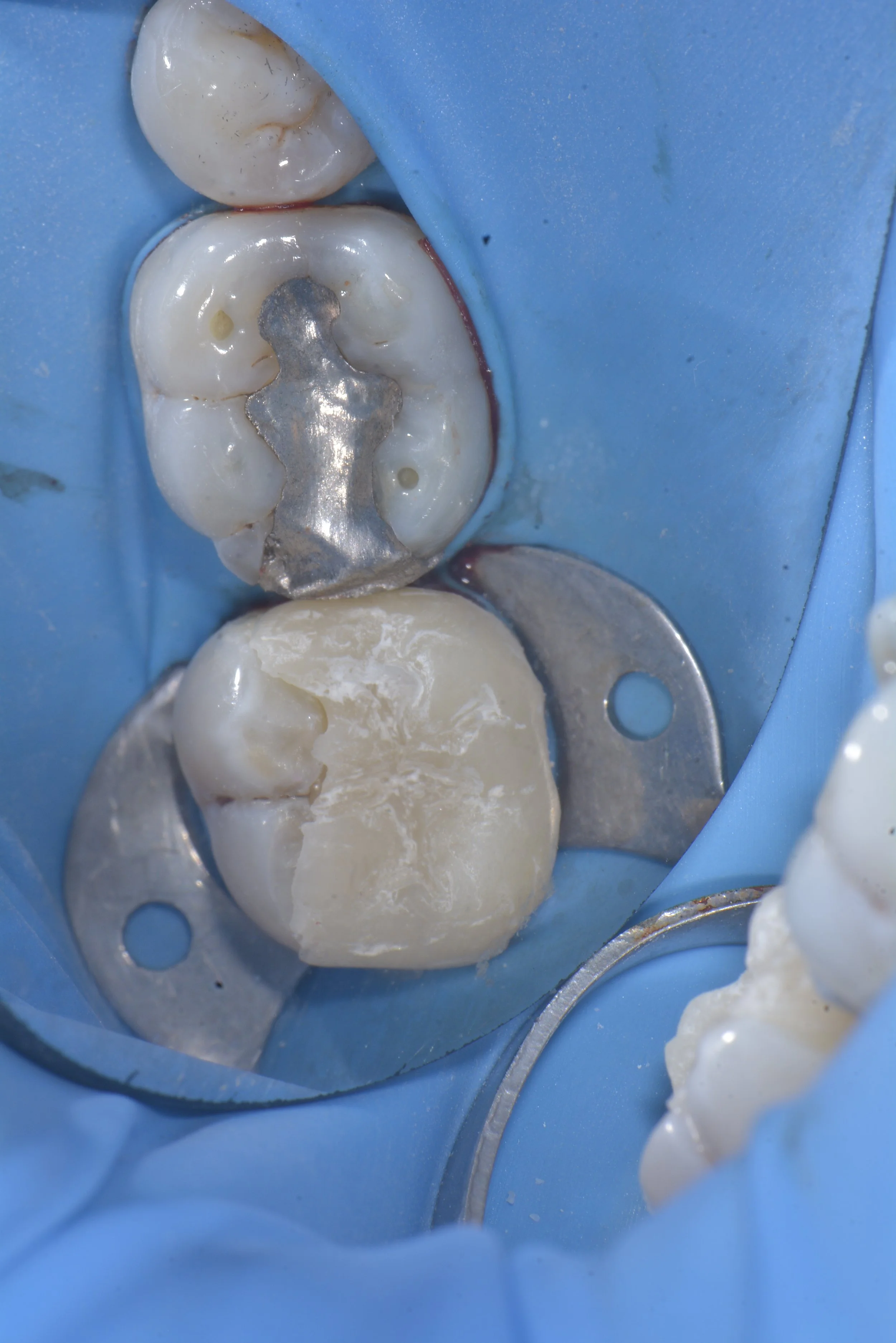 Immediate dentin sealing and resin coating are the direct component of a biomimetic restoration, essential for creating a strong hybrid layer. Case and photo by Dr. Davey Alleman, DMD.